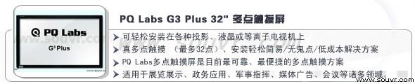 | 规格 | PQ Labs G Plus 32" 多点触摸屏 |